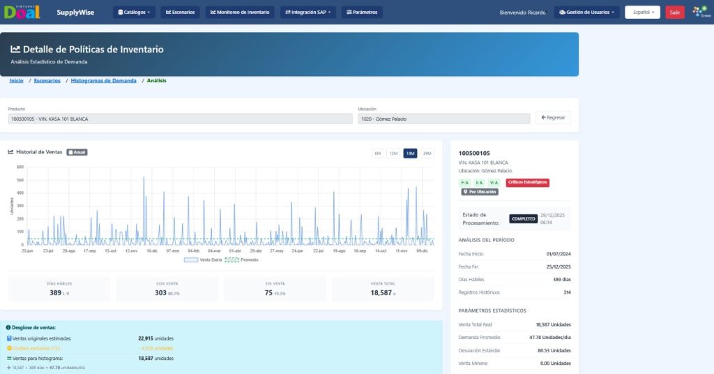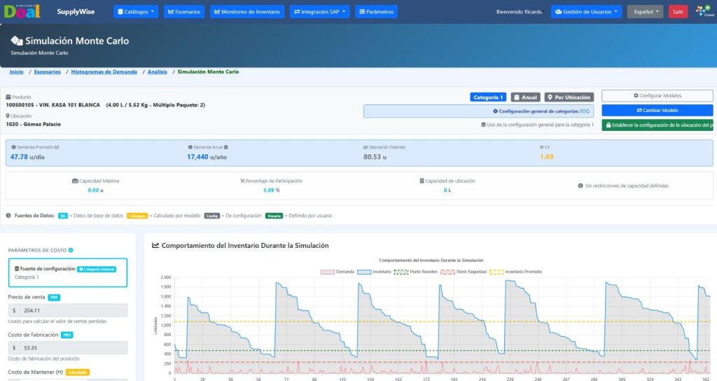 Como resultado, los parámetros recalibrados se integraron de forma automatizada al sistema transaccional, alineando las decisiones operativas con una lógica cuantitativa de optimización, control de riesgo y balance entre nivel de servicio y capital de trabajo